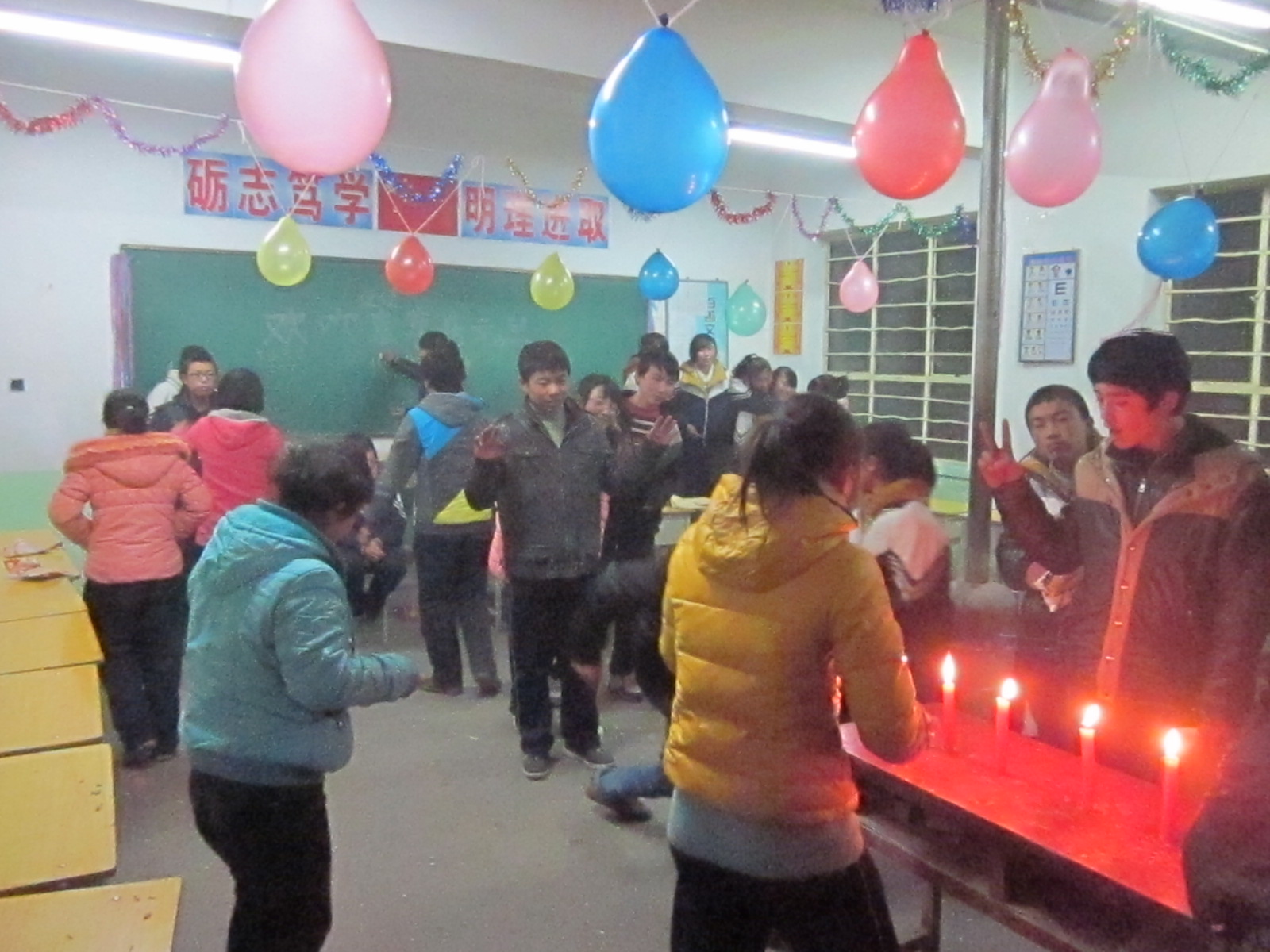 一切准备就绪,班主任宣布晚会正式开始,大家都大展身手,拿出了自己的绝活:有小品、有歌曲、有舞蹈,最后是自由狂欢的时间。最精彩的要数小品了,逗得大家捧腹大笑。老师们也被这欢乐地气氛所影响,高兴地唱了几首。