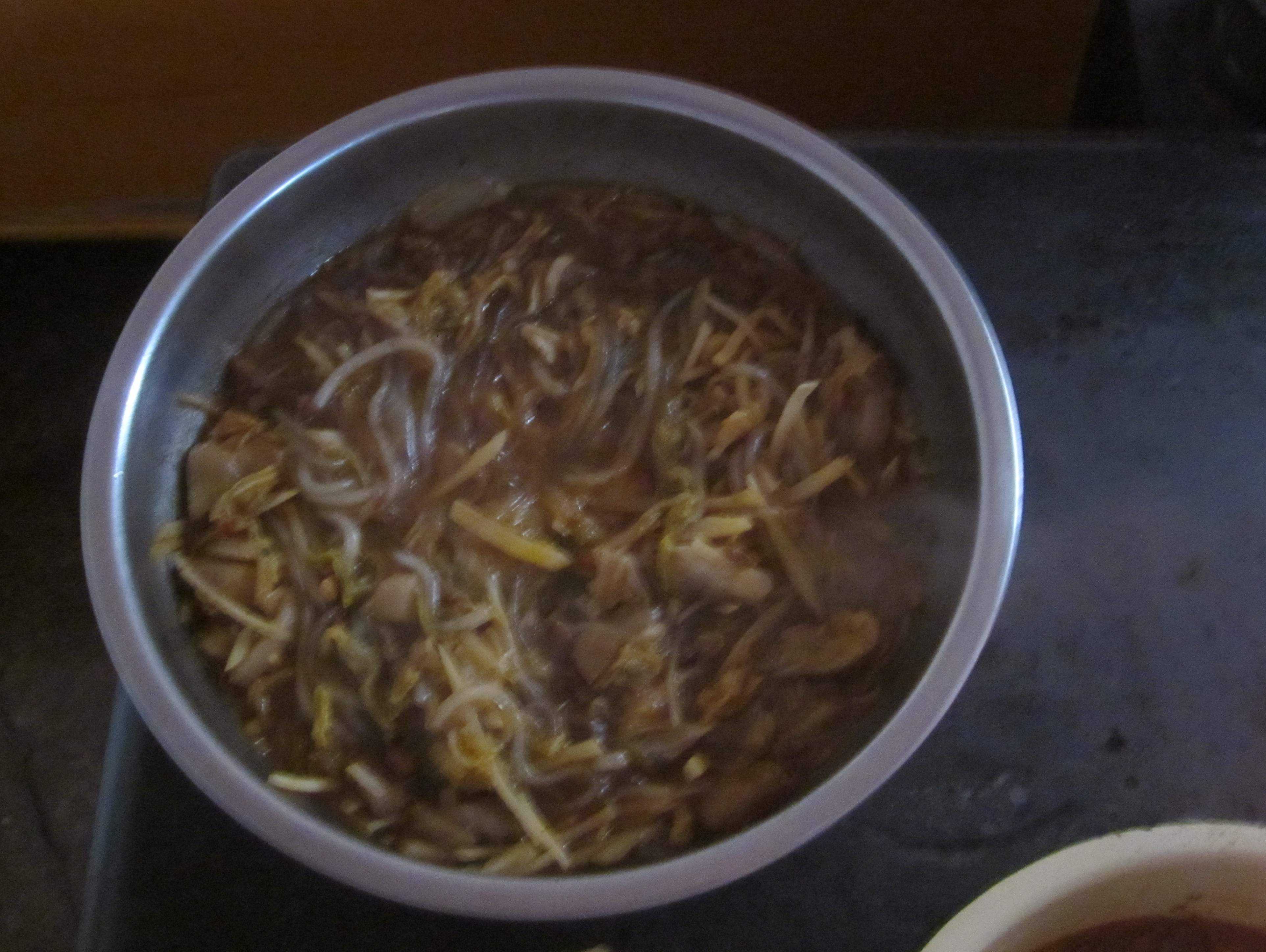 酸菜能做很多种菜它就像光学里的三原色一样搭配起来就能发出不同的光色。它和土豆搭配时是美味的酸菜土豆条,再搭配上农民们爱吃的馓饭好吃的不得了。它和粉丝搭配起来就是美味的酸菜粉条,它和肉搭配能做成好吃的酸菜汇肉。家乡的酸菜真是让人回味无穷,吃了还想再吃。