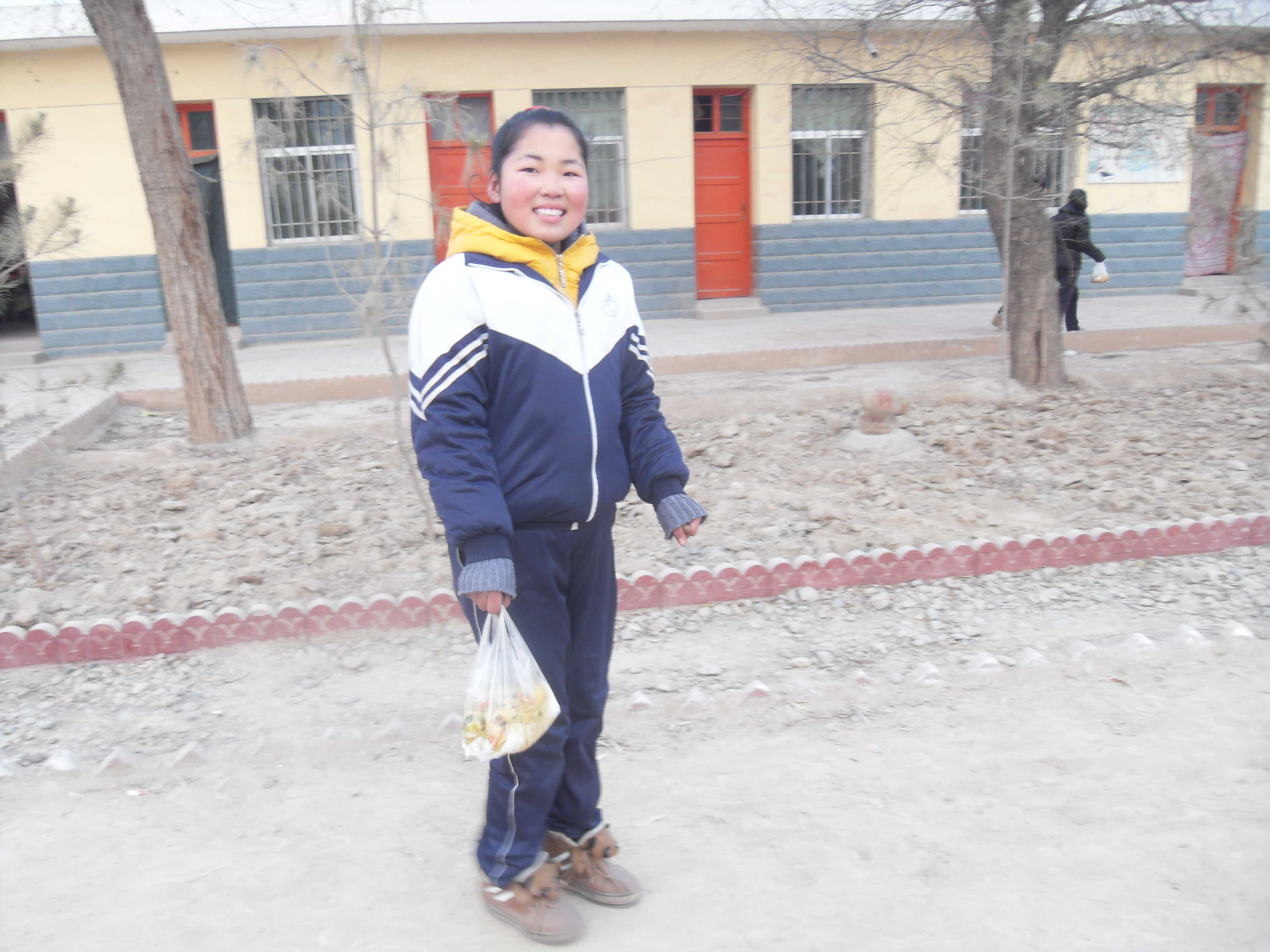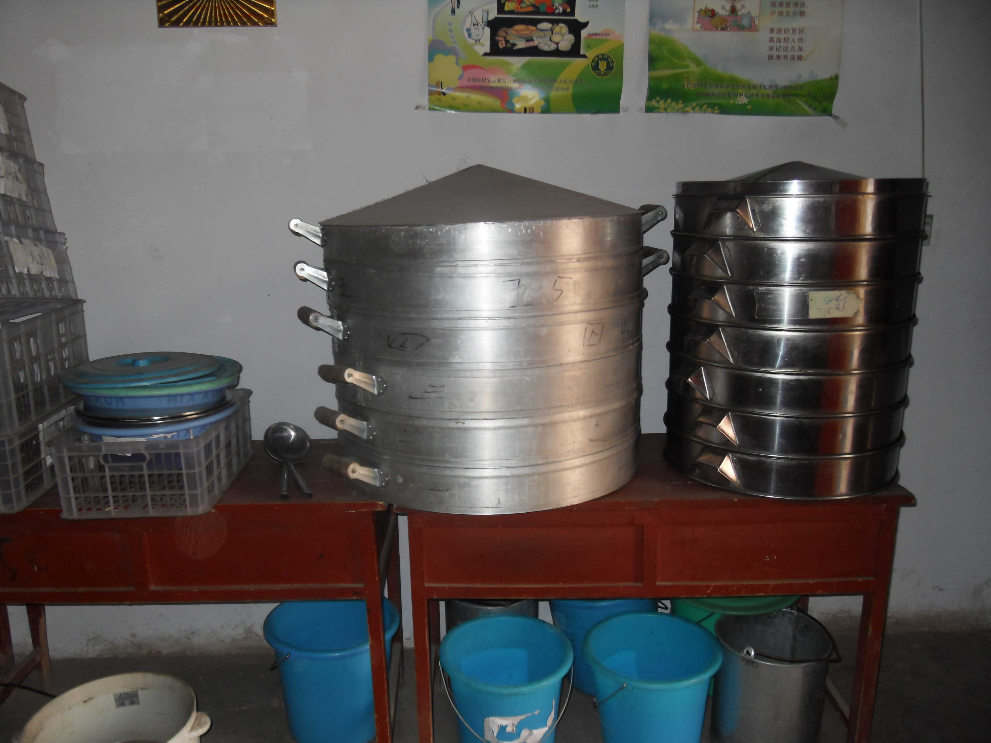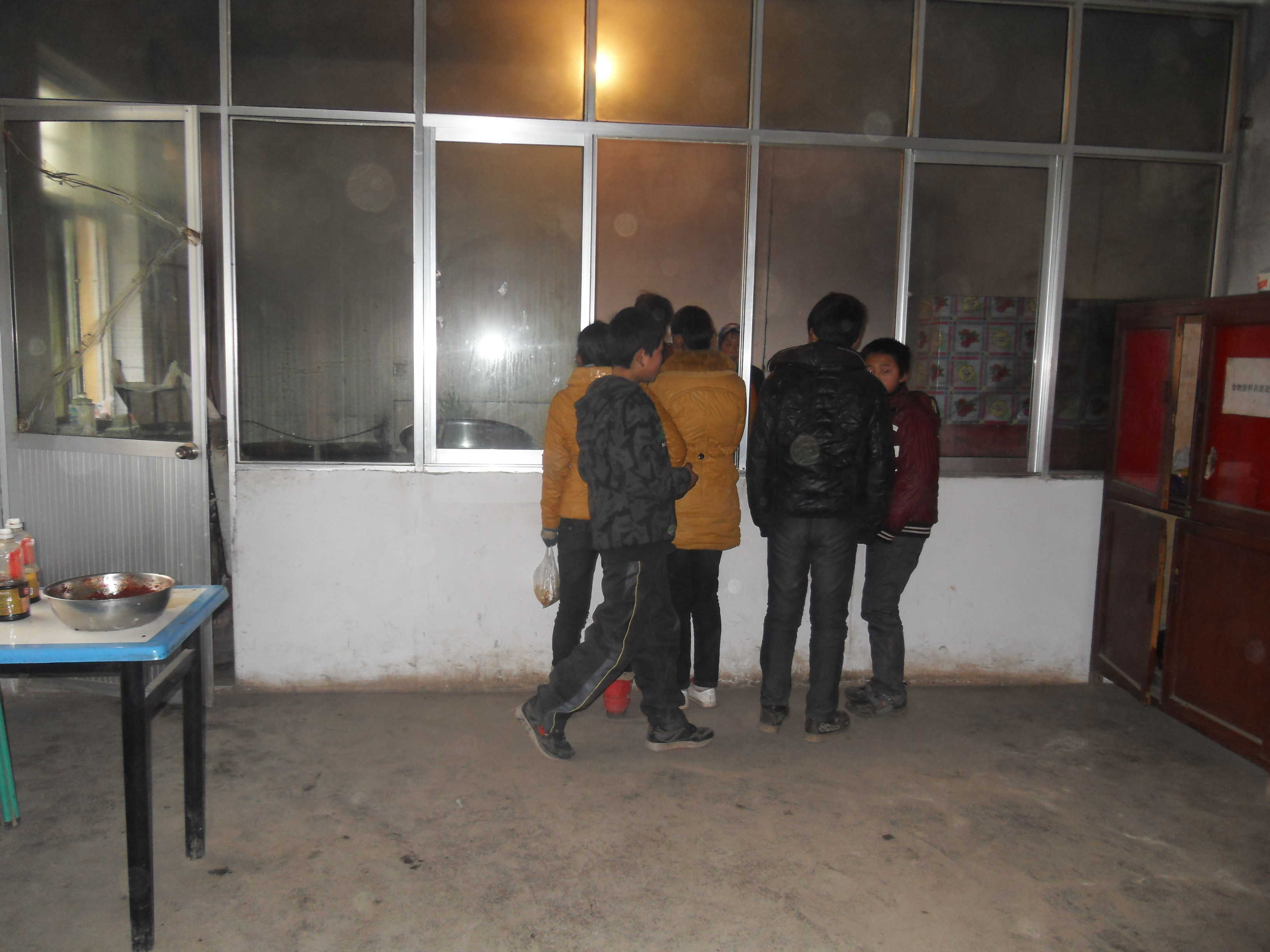 食堂里的陈设有点老化,一进门左右两边各放着一个已近有伤痕的桌子,上面放着给同学们发的营养餐。靠墙的角落里倒是放着一个看上去比较像样的消毒柜,这是整个食堂里唯一一件比较先进的东西了。