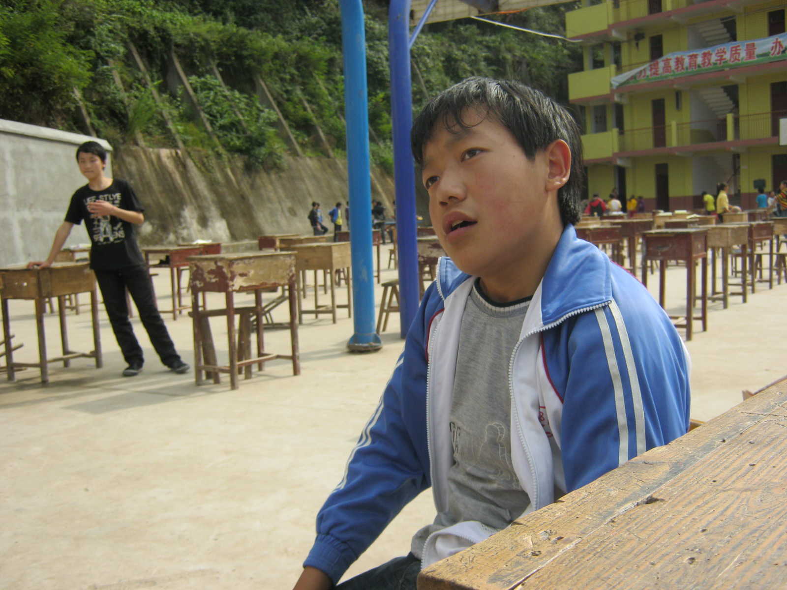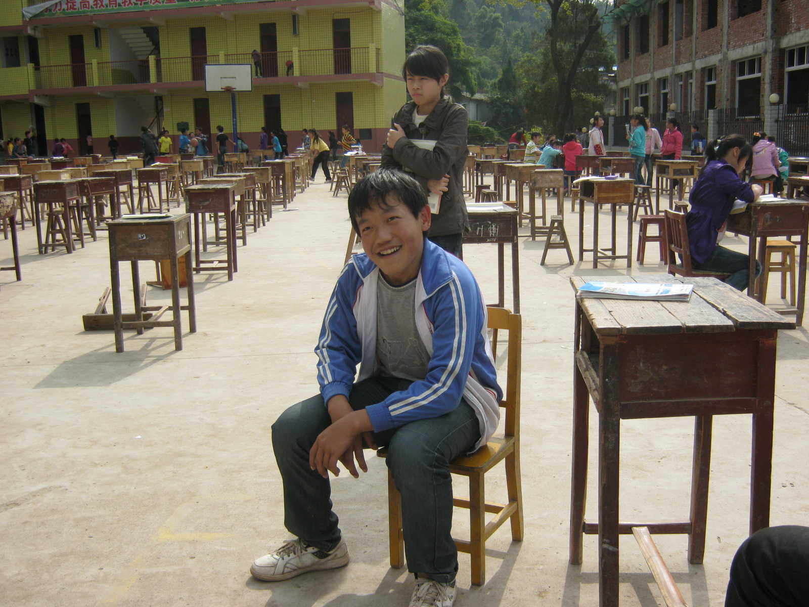 老师说他上课总爱发呆,神游天外,为此,经常被老师批评。平时,他总爱一个人在位置上发呆,还时不时在那傻笑,每当同学们看见他这样,总是会问:"你没事吧?",而他总会善意地回答:"没事!"
