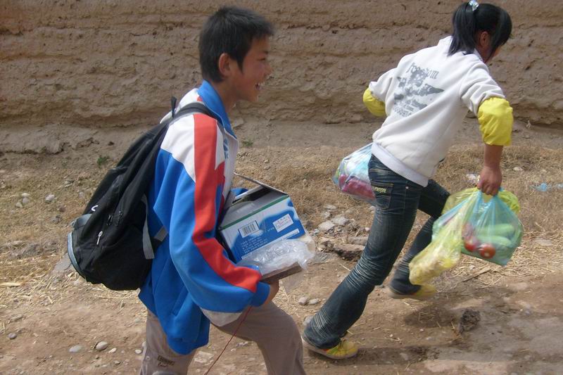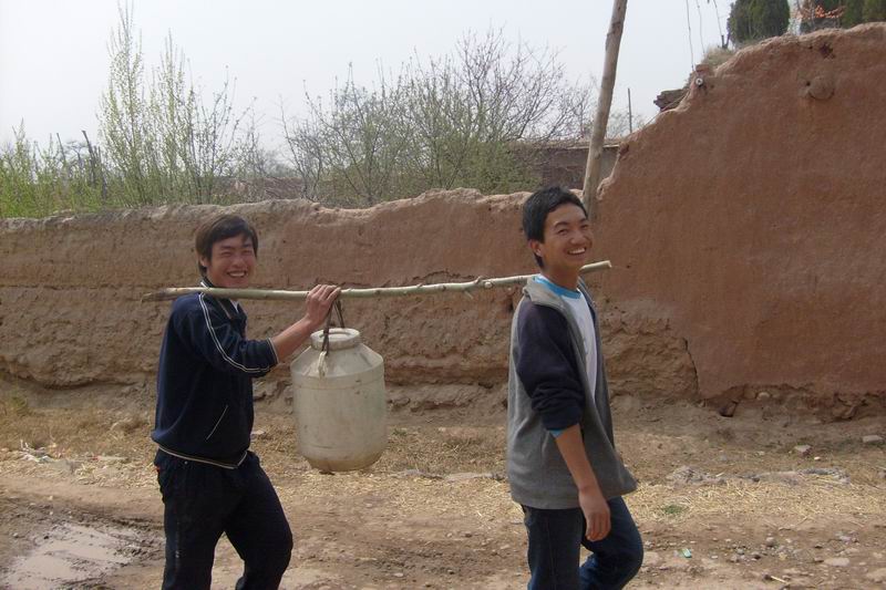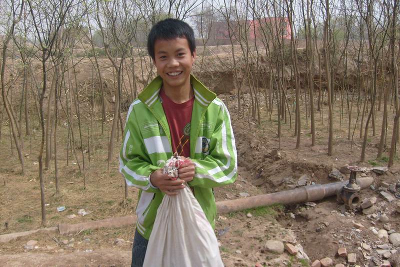 就在大家赶路的时候我注意到了这位同学,他提着一袋子东西鼓鼓囊囊的.处于好奇我赶忙上去问了这位同学,你们猜是什么!呵呵 ,猜不到吧!原来里面装着一口锅~~耶!!~~恭喜你答错了.