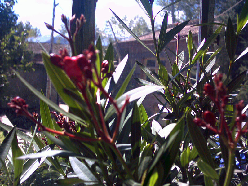 人们在辛勤劳动之余,前来观察她们。花儿的脸笑得越发红了。周围的绿叶为她们感到高兴,纷纷挺直了身子,把她们托举得更高更美了。