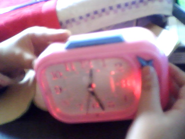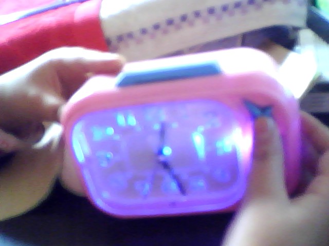 我的小闹钟,是粉色和蓝色相交织的。每当晚上关了灯又想看表的时候按一下 右边星星状的键,就会闪烁出五彩缤纷的色彩,有红色;绿色;黄色五颜六色的灯光映照在你的脸庞上,你会感觉到无以伦比的快乐。