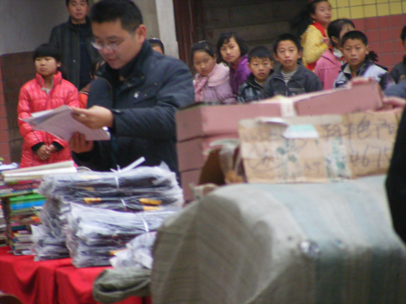 他们为我们分发了学习用品。还告诉我们要好好学习,将来回报社会,回报国家。还叮嘱我们以后要做一个有爱心、有回报心的人。
