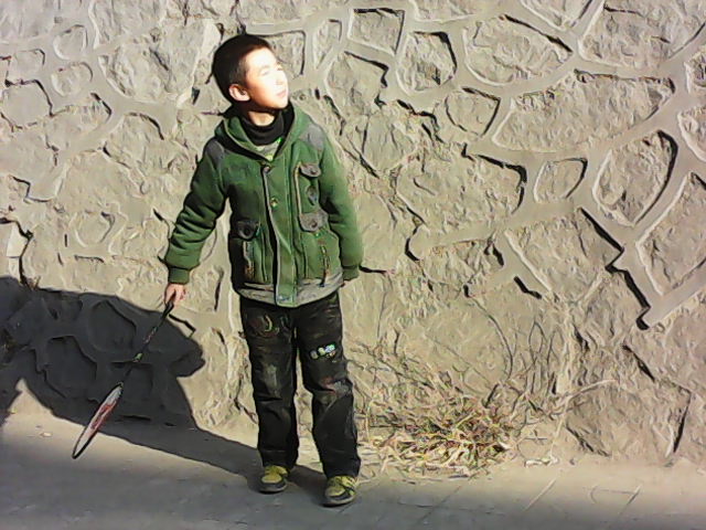 接着是我和高波对打。我先发球,球飞过去他不但没接着球反倒摔了个四脚朝天,嘴里还喊着:"哎呀,我的屁股呀!"惹得我和马文杰哈哈大笑。