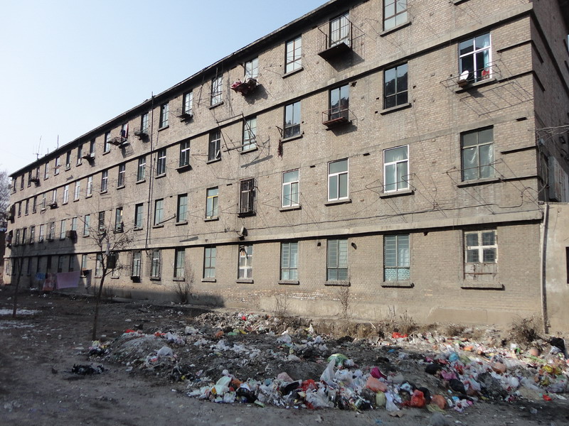 以前的这个居民区,所有的房屋几乎都是危房,外侧的墙壁上都有着可怕的裂缝,许多人家的窗户也早已破损,由于居住在这里的人不爱惜自己的家园,垃圾扔得到处都是,本打算堆积在一起等清洁工来清除,可是,始终也没见清洁工的身影,久而久之,这个小区的人们都把垃圾扔在这里,致使距一栋楼不远的地方堆满了人们的生活垃圾,这样的生活条件与生存环境使人们如何居住呢?