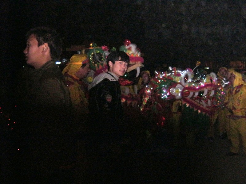 今天是正月舞龙的时间,还没到晚上,许多人就来到了街上,拿着鱼多吃的,玩的。等待舞狮大会的开始。
