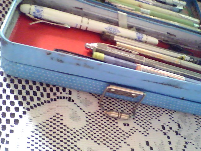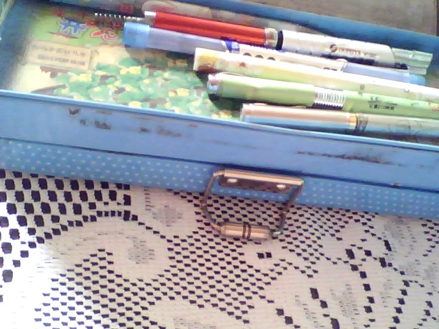 第二层,里面装这四支钢笔。有一只绿色的钢笔,它可是我在没墨水是的重要"援兵",没有了它,在十万火急的时候我就交不上作业了。还有一只小巧玲珑,金银相见的小钢笔,它可是我的最爱,在一般情况下,我是不会随便使用它的,除非有不可思议的事情发生。接下来要讲的是两位形影不离,朝夕相处互相帮助的好朋友,他它们长得一模一样,但是就一点的是姐姐,新一点的是妹妹,它们从来都不会为了一点小事争来斗去,而是和谐的朝夕与共,真不愧是还姐妹,我一般都用它们来写作业。