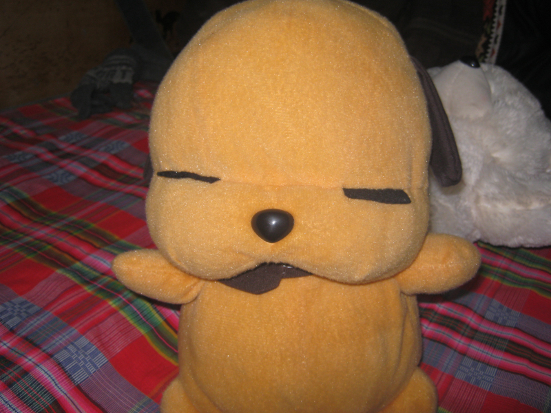 瞧!这是一只可爱的小狗,它身体金黄,黑色的耳朵达拉着,很是飘亮,它坐在那儿一动也不动,好像在打坐一样,很有风趣,它的眼睛一眨不眨地看着前方,好像在瞻仰的工艺品,它的样子又可爱又飘亮。