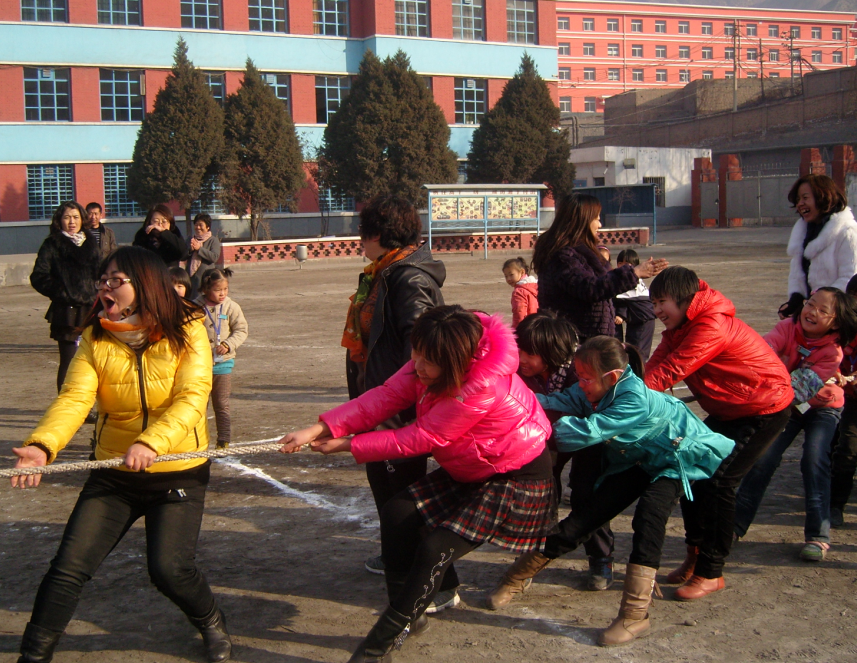 三八妇女节前一天,老师们来了一场拔河比赛。