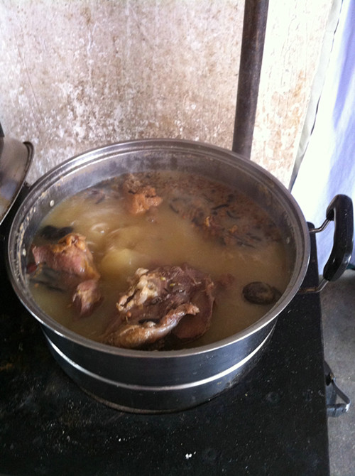 十分钟、二十分钟……水渐渐开了,妈妈又用漏网将一些汤沫和肉渣捞出来,之后又让它煮。两个小时后,肉终于熟了,闻着香喷喷的肉,我直流涎水,于是甩开嘴巴大吃了一顿。