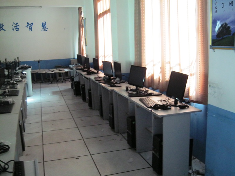 再来写西部故事时,看见微机室里就已经不再是原来那些银灰色的笨重的电脑,取而代之的而是一排排崭新的黑色电脑。