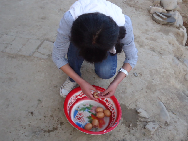 首先将蛋壳搓一个小小的洞,然后小心地将里面的蛋黄和蛋清倒出来,切记,不可太用力,否则会弄破蛋壳。