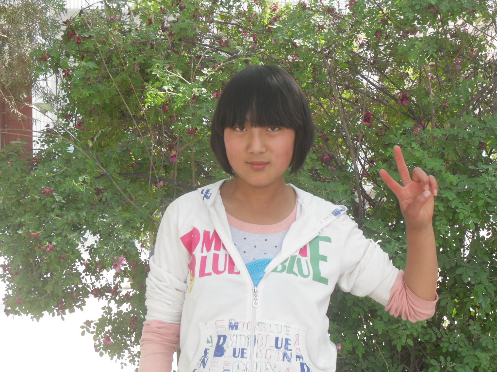 她,一头黑黑的长发,额头前是齐齐的刘海,一双漂亮的双眼皮下是高高的鼻梁,在下面就是一张整天和我斗嘴斗个没完的巧嘴,还有她那双"顺风耳",站在大老远叫她一声她都会马上转过脸望过来。她中等身高,体格较瘦,她就是我的死党— 周建平。