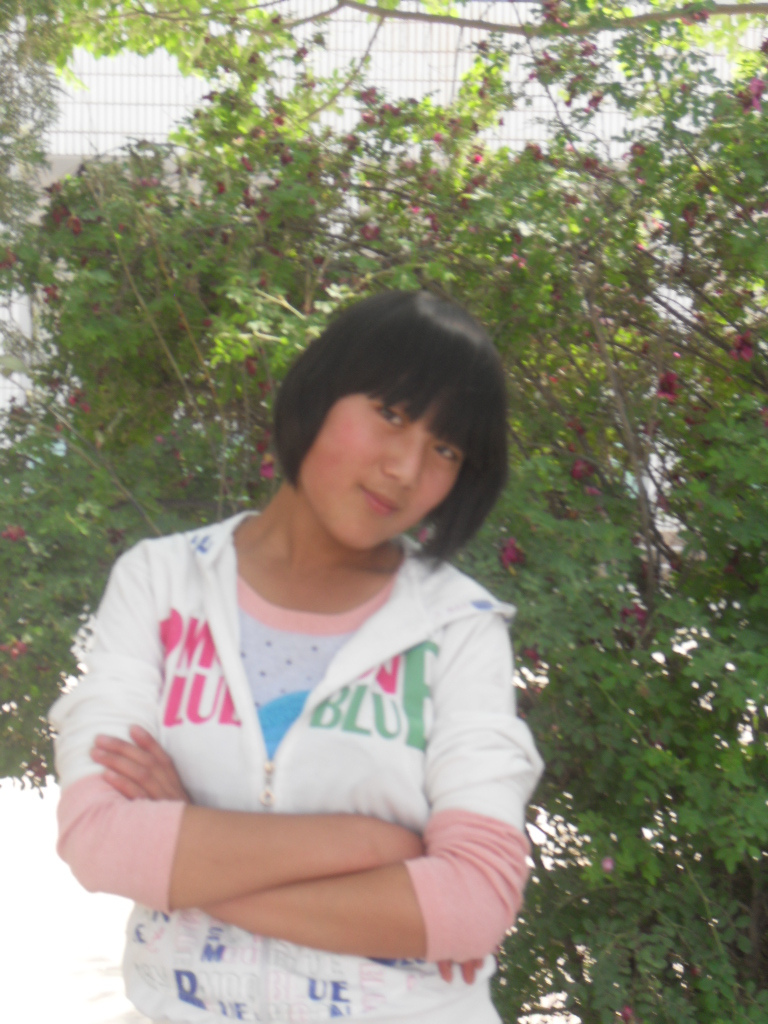 她,一头黑黑的短发,额头前是齐齐的刘海,一双漂亮的双眼皮下是高高的鼻梁,在下面就是一张整天和我斗嘴斗个没完的巧嘴,还有她那双"顺风耳",站在大老远叫她一声她都会马上转过脸望过来。她中等身高,体格较瘦,她就是我的死党— 周建平。