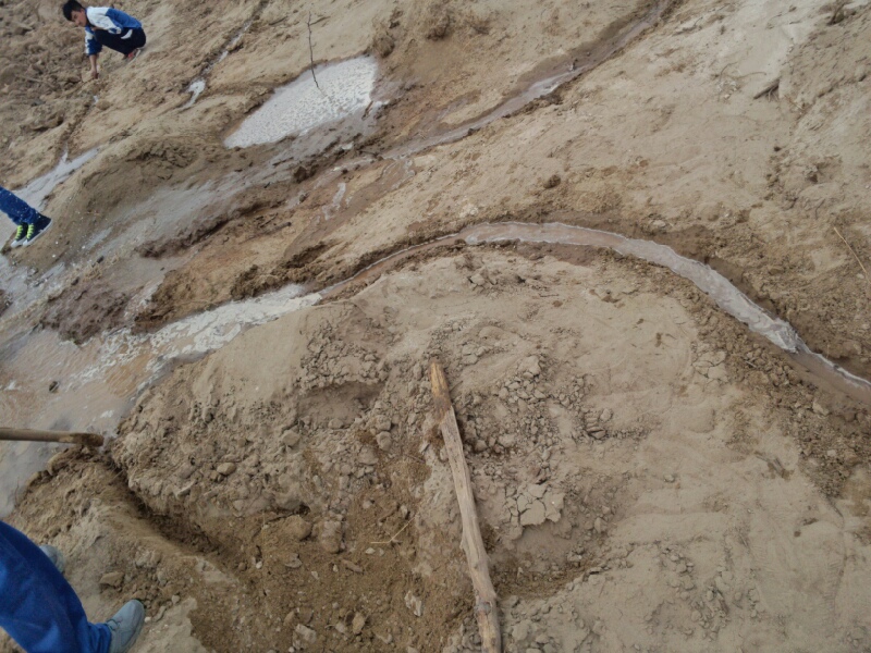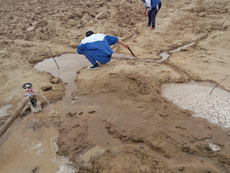 你看,同学们还是不愿意放弃手中的工具,还在挖水沟,平整的一块地,让他们挖的沟沟壑壑的,好像是几条卧在山里的几条巨龙似的,纵横交错着,看着特别壮观。难怪同学们都不愿意撒手,原来他们就想要这样的效果。