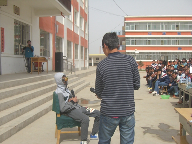 在4月19日这天,我第一次拿着话筒走向了表演的舞台,尽管我演的只是一个配角。我知道,我成功了,上台后,我没有怯场,也没有紧张,更没有说错一句台词,哪怕是一个字!
