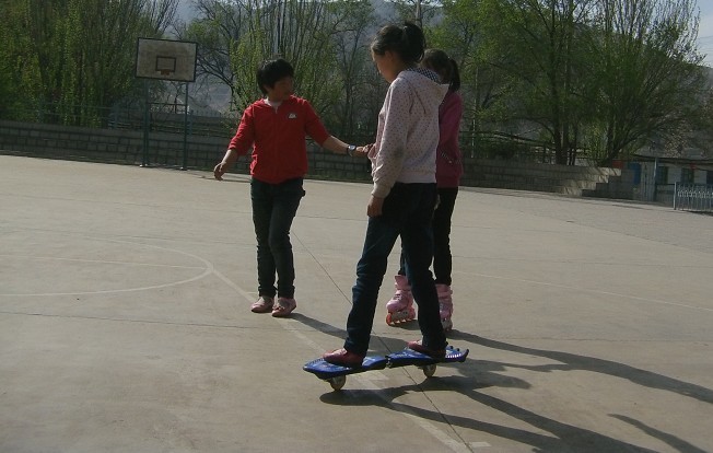"那好吧"我不忍心让好友脸上的微笑消失,只好答应一步一步慢慢滑,后来不用别人扶,可以在操场上自由自在的滑了。