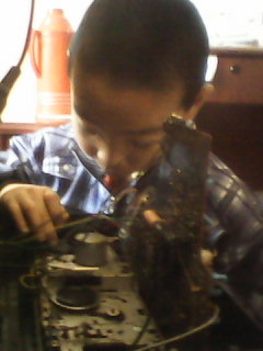 他还有一个爱好,那就是把电器拆开,又给组装上去。他认认真真的把某一件东西拆开,而且也不会把任何一个零件给损坏,把零件给组装上去时,有时也会把这些零件组装成别的东西,只要组装成功,就会高兴地跳起来。