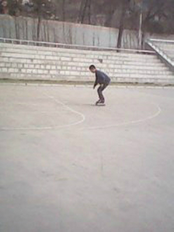 从小就对旱冰有难言的情愫,当我第一眼看到它时 ,磁铁般的力量就将我紧紧吸引,我花出血本买了一双,回家迫不及待的穿上它,还没站起来呢,就给了我一个下马威,我狠狠的摔了一跤,在泪水中我一步步踏上广场,从此广场上就出现了一个匆忙的身影。姐姐是和我一块连习甩了几跤后,就像斗败的公鸡败下阵来,还不忘给我"煽煽风":"小子,放弃吧,这太难了,谁愿意早那罪!"我狠狠的蹬了姐姐一眼,蛤蟆般的的向前滑去,"啪"又是一跤,姐姐捂着脸,无奈。我一抹鼻子上的灰 ,就倔强的蹒跚滑去。