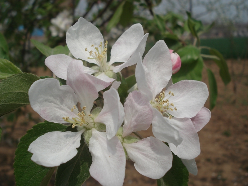 处于温带气候的我们家乡,苹果是我们的主要农产品之一。我们渭南白水的苹果全国有名。正因为这小小的、粉的白的五瓣花儿,我们才能在秋天见到那一个个有红又大的苹果。花儿除了装扮春天,更重要的是奉献给我们累累的果实。