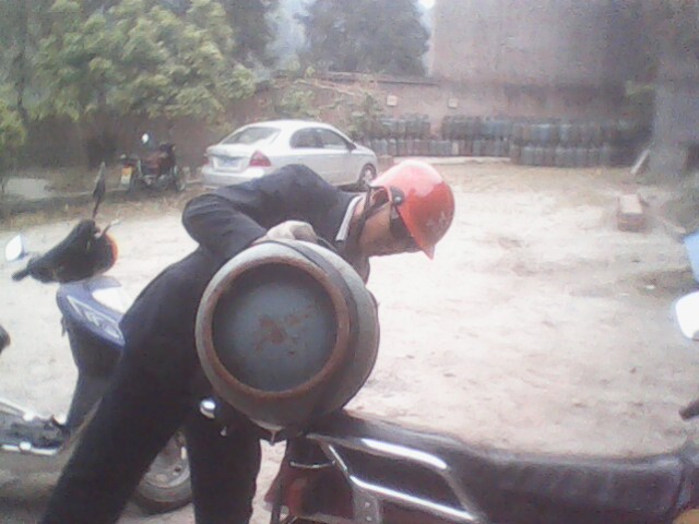 过了大约五分钟左右,煤气就这样轻松地灌好了,不到几分钟就到了楼下,这时候,再来提煤气罐,他们的分量比之前的可重多了。遇到难题了,这怎么才能搬上去啊?同学说:“叔叔你帮个忙,帮我们提上去哈嘛?”他说:“这个没多重,我要提上去的话,那就得多收几块钱了,你不划算哈!”真够势力的。后来我们去街上的另一边找了一位大叔帮忙,这才将这个过程完成(耶!终于可以睡午觉了)。