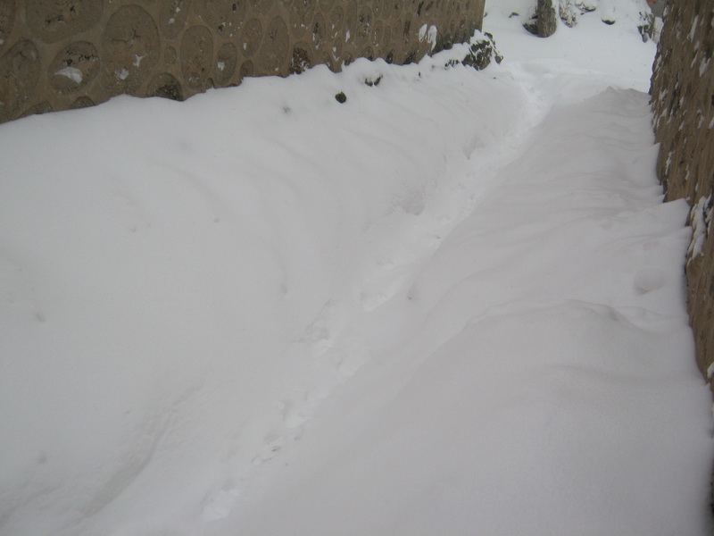 今天是星期日,我又要返校了。但雪这么大,车进不了村子,所以只好徒步走到村外的公路上去坐车。