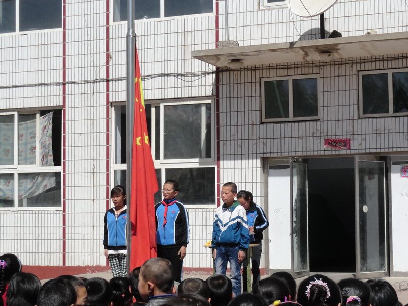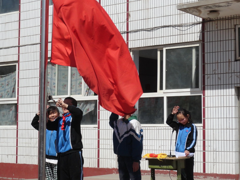 上完晨读课之后,在文体委员的带领下,我们在操场上站好了队。古娜走上主席台说:“升旗仪式现在开始!”接着又说了一句:“第一项,升国旗,奏国歌!”一首乐曲随着她的话音播放了起来,负责升旗的学生也精神抖擞地走上了主席台。我听到了我们班的学生议论纷纷,我也打心眼里不服,为什么又是他们三班呀?可心里还是有点羡慕,谁让人家老得流动红旗呢!