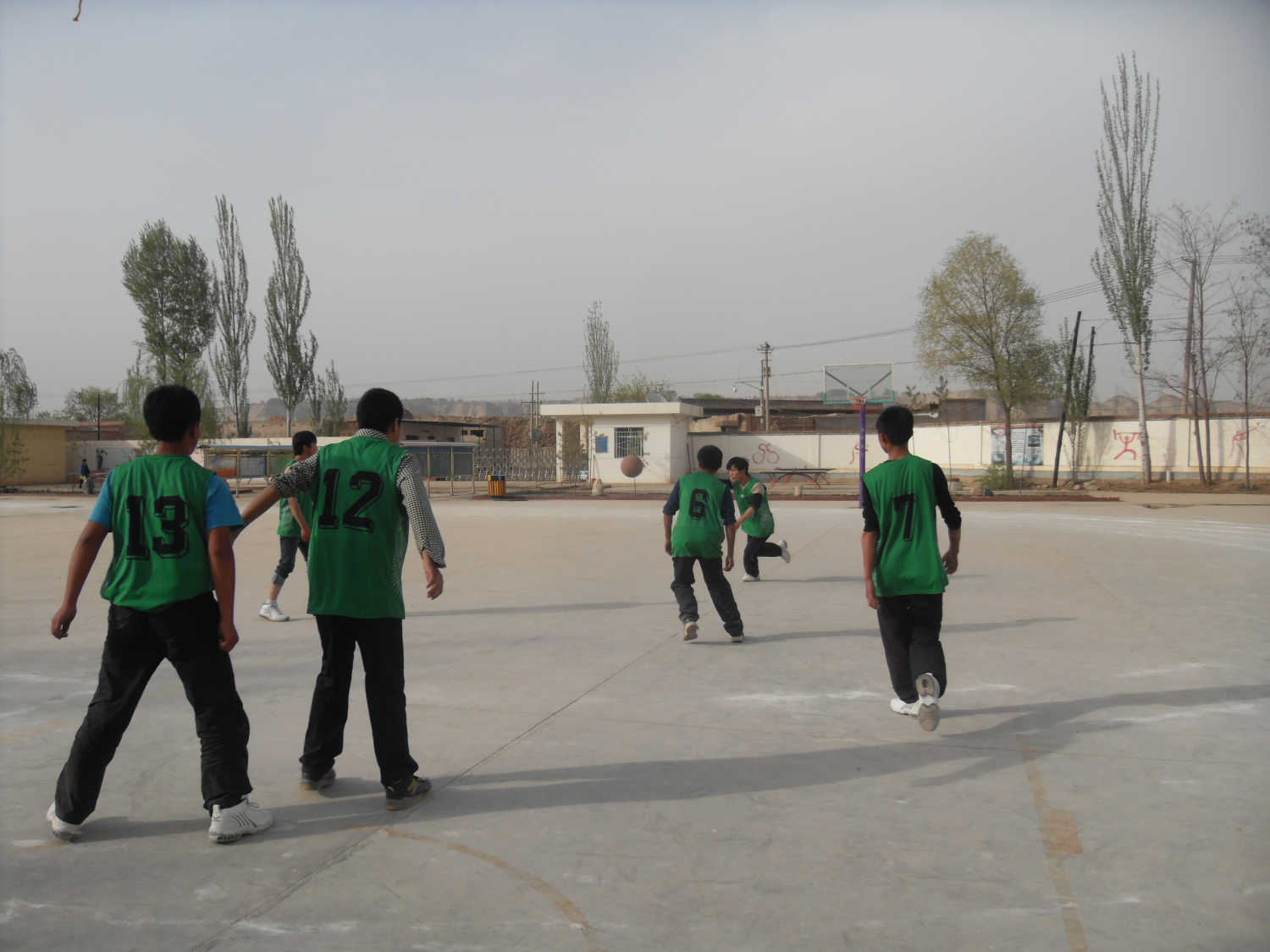 操场里的槐树和柳树是比较惹人眼球的,槐树的花朵和柳条的绿叶相互映衬着,绿红相间,一切都显得是那样美丽,那样和谐。一阵风吹过,柳条随风飘曳,这时,粉红的槐花才撩开它绿色的帘障,出来吸口空气,享受那短暂的日光浴,有迅速地回来了啊,心却还留恋着大自然的一切。