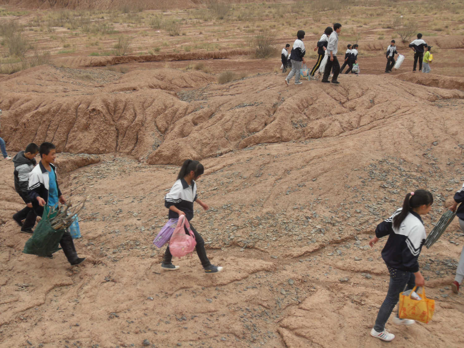 今天,风和日丽,我们整装待发。这次是要出去烧土豆,大家分成了小组,准备好了土豆和柴火,还买了好多水果。拎着大包小包我们上路了,目的地离学校不远,就是去年去过的老地方。到达之后个小组就开始物色合适的有利的地方进行烧土豆的提前准备。