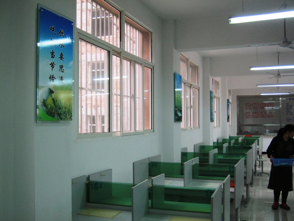 学校微机室的新电脑和新食堂差不多是同时启用的,但食堂还在一步步完善中。刚开始的时候食堂里连凳子都不够,但现在参加“两免一补”的同学都能在食堂用学校发的饭卡刷卡了。