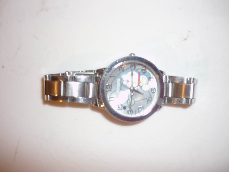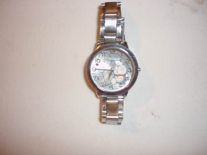 我有一个漂亮的小手表,它是妈妈送给我的生日礼物。这只小手表的外形精致,走时准确他那赢得表壳,看起来非常漂亮。它的表盘内画了一个特大号的哆啦A梦轮廓,和一个上了色的小哆啦A梦,圆圆的表盘上罩着一块透明的玻璃。看上去是多么令人喜爱呀!