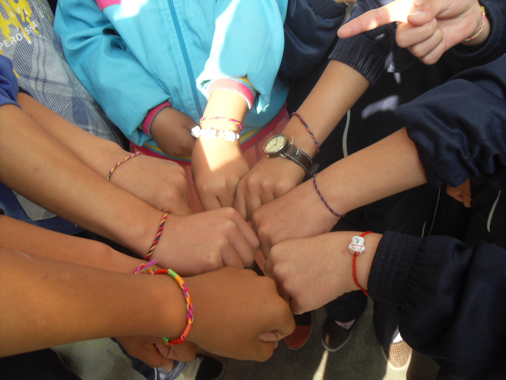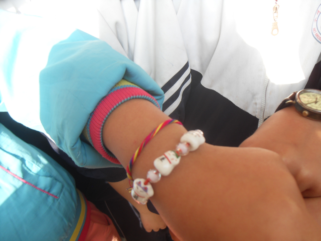 同学们买了五彩的、颜色亮丽的花绳,自己开始编,一下课,女同学就拿起花绳,娴熟的编起来,花绳在女生手里就像是一只温顺的小羊,任他们东拉西扯,编成各种各样的形状,戴在手上特别好看,编的花绳可以送给好友、父母,表示节日的问候。