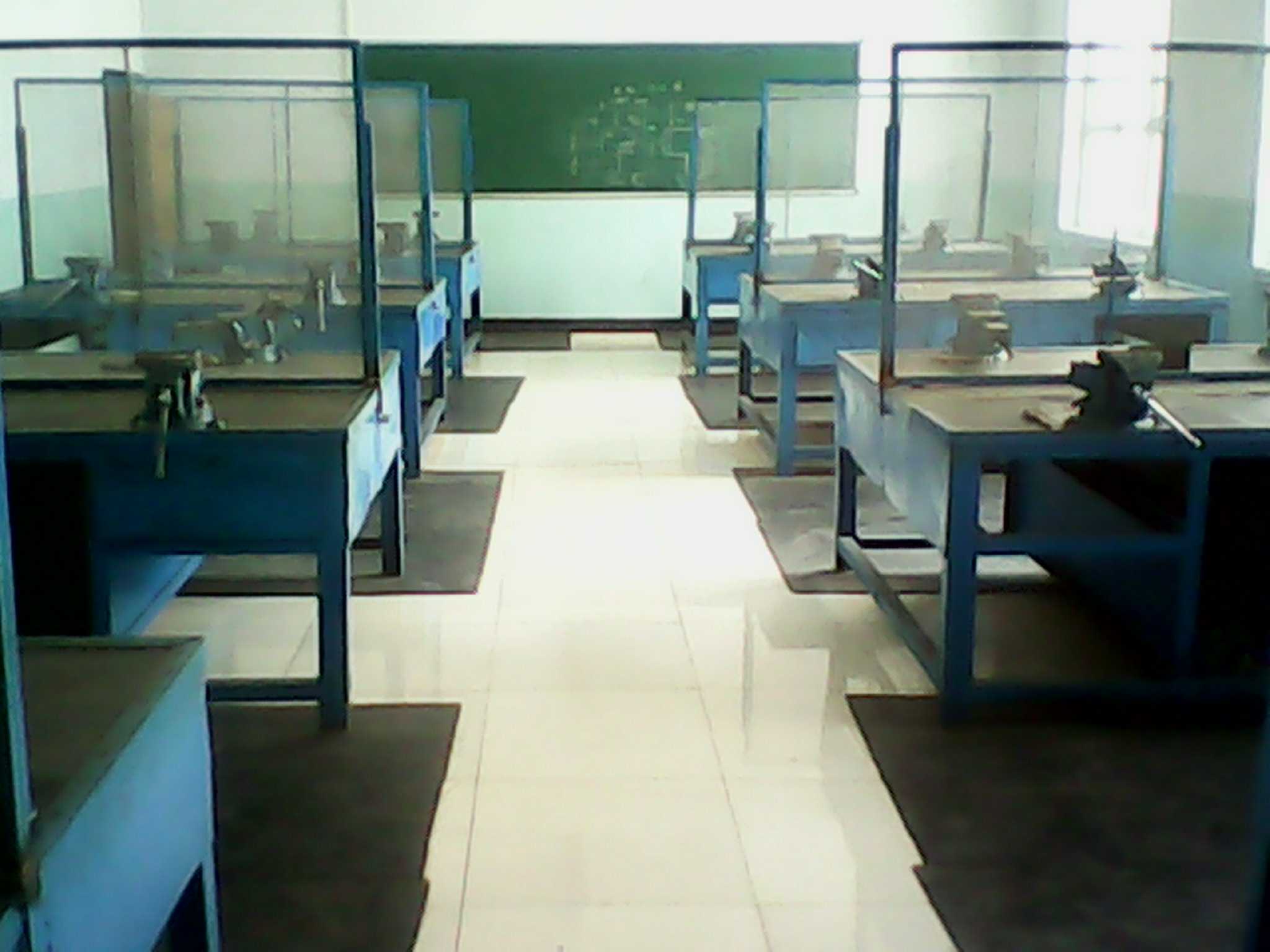 ☆ 这张照片是学校的钳工实训场。此时,这里的异常平静让我感到很意外,往日这里一片嘈杂,这让我想到了曾经在这里挥洒汗水的日子。让我真切感到了作为一名钳工的不容易,也让我体会到了单调、乏味之中的信念与执着。与电力拖动实训场相比,这里的平静更是一种难得的美。一台台虎钳,像一只只沉睡的猛虎,仿佛随时准备苏醒,那张充满力量的"大嘴",总叫人胆颤心惊。