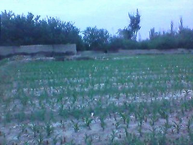 终于玉米苗放完了,我总共放了四排,看看地头真长呀!我开心的笑了。