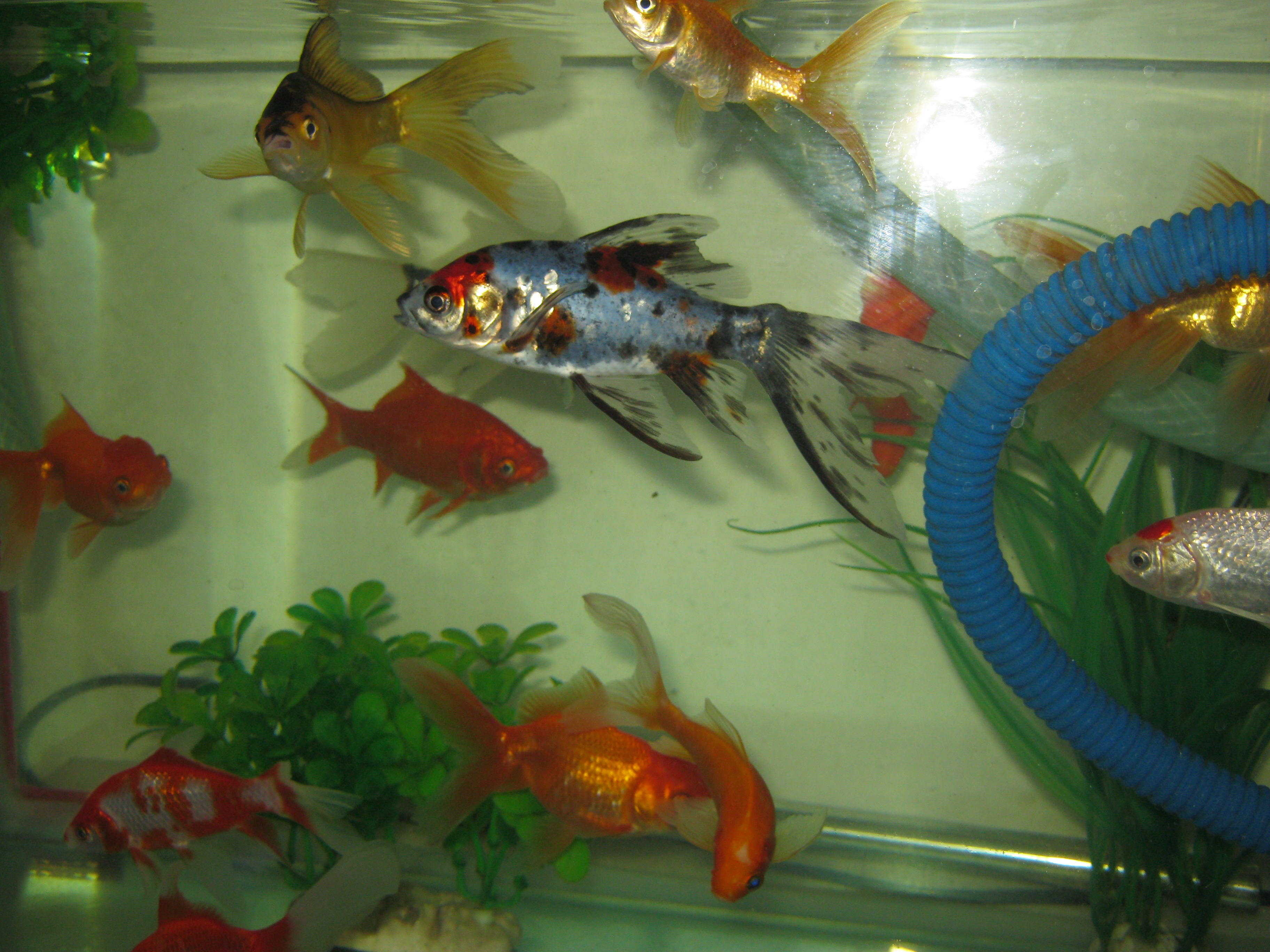 我家曾经养过六条活波可爱的小金鱼,可惜全死了。我们家养的小金鱼颜色可多了!有黑色的,有红色的,有黄色的,还有一条银灰色的小鱼。它们都长的非常可爱。