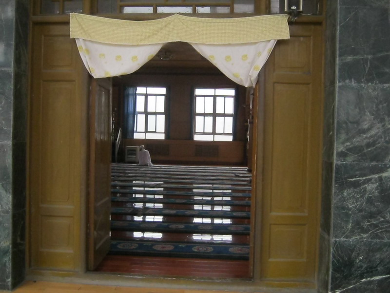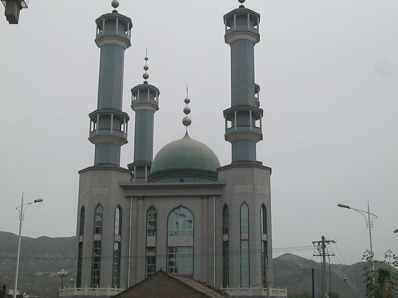 家乡的清真寺,从结构上看多采用木结构体系和砖木结构体系。从布局上看一般为"三堂一院":即礼拜堂为正殿,南北厢房为经堂和澡堂。大殿顶部为一大穹顶,直径为9.5米,四角各为一小穹顶。大小穹顶通体全绿,顶部均有装饰,其中大穹顶上的新月距地面22米。大穹顶底部与殿内的方柱之间为圆柱形的鼓座,开设有24扇天窗,加上大殿内南北两侧各开6扇大窗,就增加了殿内之光照亮度。此外,殿内还有19盏大灯,墙壁上置双管玉兰灯。礼拜大殿下层为小礼拜殿、阿訇住房、会客室等,以回廊相连接。