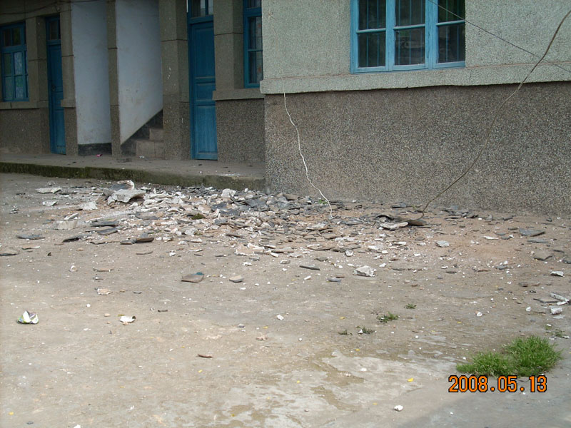 我们的学校受到5月12日地震的影响,有的地方砖头都脱落了,过道栏杆断裂倒塌,地上铺了一层断砖碎瓦。