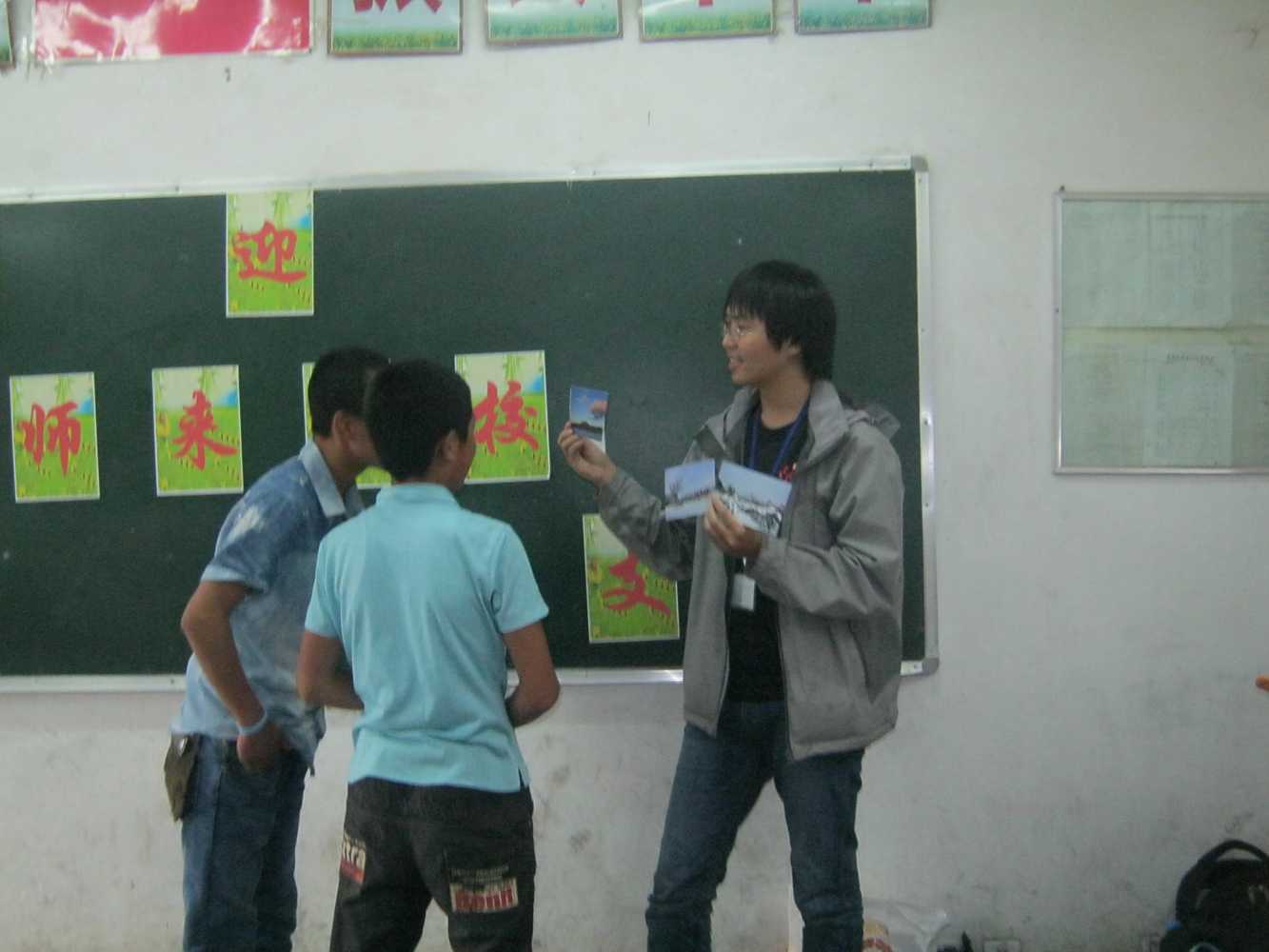 7月17日我们放假了,老师说台湾花莲飞扬成长中心的老师要来我们学校,我们别提有多高兴了,一个个早早地就来到学校,等待这些远方的客人。由于花莲一行在北京被暴雨滞留在了机场,比预期迟到了差不多两个小时,没想到这次他们来了十三个人,这也是我们农村孩子第一次这么近距离的和台湾朋友见面。