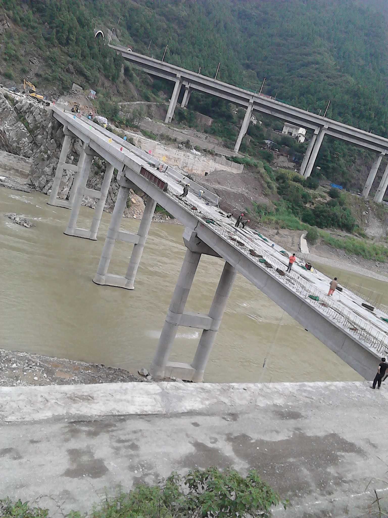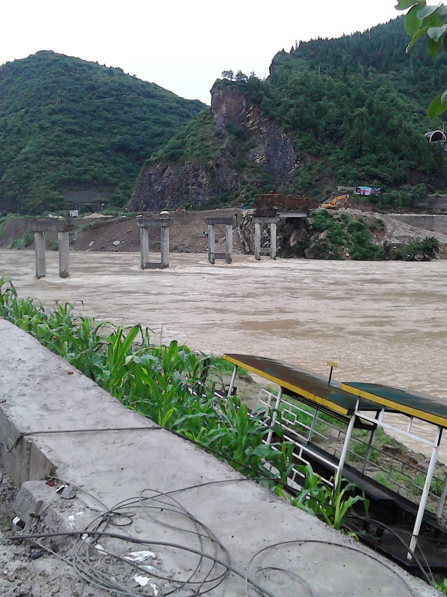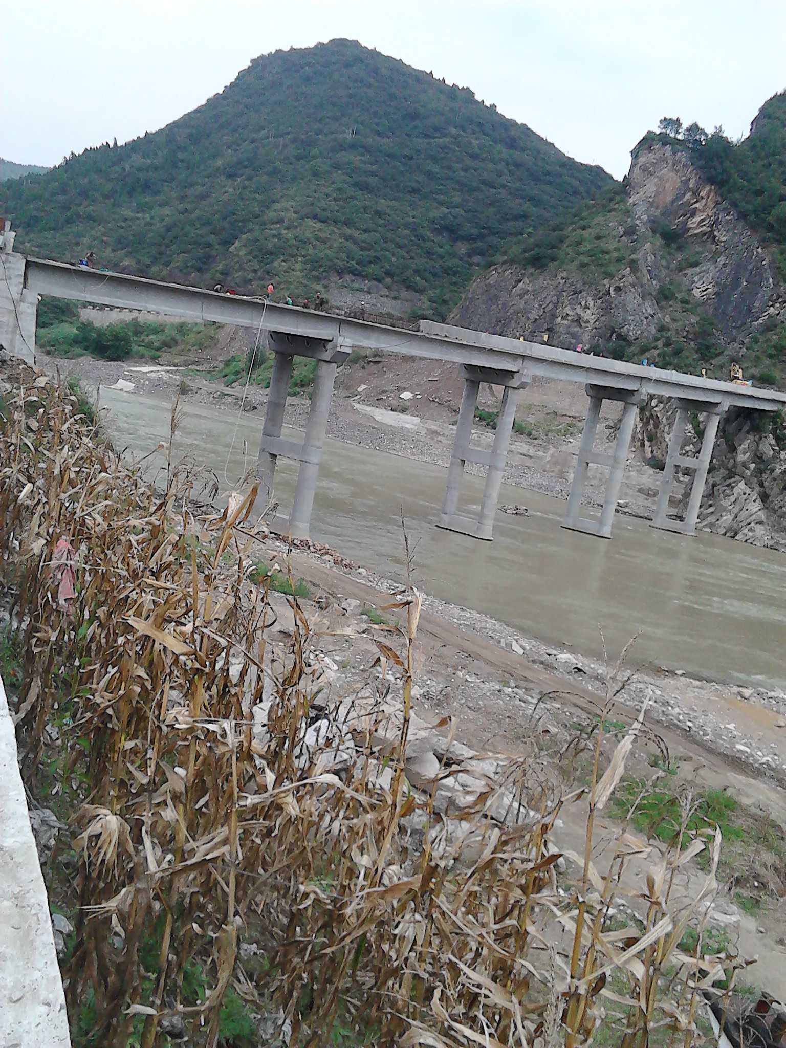桥架于嘉陵江上,在奔腾的江水上矗立着,架桥的原因在于蒲家乡道路被嘉陵江所阻隔,蒲家老百姓都必须靠船或徒步火车桥过江,才能通过隔江相望的108国道上至广元,出行十分不便,由此架起这座桥。绿色的玉米秆再也不是绿色的了,它已渐渐的成熟到了金黄色,它的颜色告诉了我们这是什么季节。还记得,这段工程是从春季开始的,上面领导答应蒲家人民要在年底完成这一项目,也就说,这断桥要建造大半年才能架起,然而,已经进入了秋季,眼看着这座桥就要快完工了,心里是无比的激动。