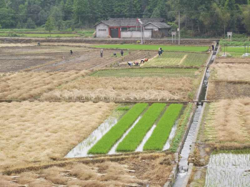 正值初秋,艳阳依旧,农民全家齐下田割稻杆,抱稻把,手掌谷机,隆隆隆,挥汗如喜。