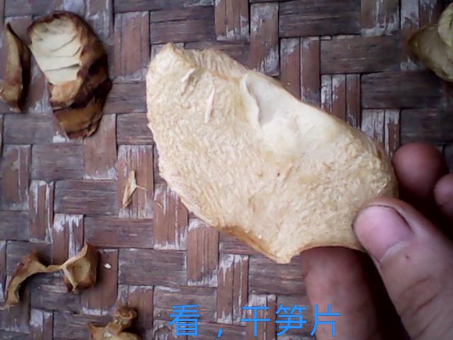 回到家后把雌竹笋到在地上,开始削掉雌竹笋的外壳,只剩下雌竹笋的肉.我和妹妹很快把所有的雌竹笋的外壳削完了.把削完的雌竹笋放到盆里,用清水把它们洗干净.再把竹笋切成薄片,把切好的竹笋放进锅里,加上三分之二的水.用中火煮半个小时,把雌竹笋的苦水出掉,用漏勺把锅里的竹笋捞起来.把水过滤了.最后把笋子晒在通风处,等晒干之后把它们装在塑料袋里封闭起来,以免被虫注了.