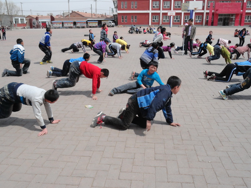 开始上课了,要知道以前我们上体育课都是围着操场慢跑三圈,然后解散自由活动。可是这次却不同了,乔老师要求我们右腿向前一步,然后把两手放在地上,再把右腿收回去。我们还以为要干什么呢,就照样做了,可一做完才知道,原来乔老师是让我们做俯卧撑。