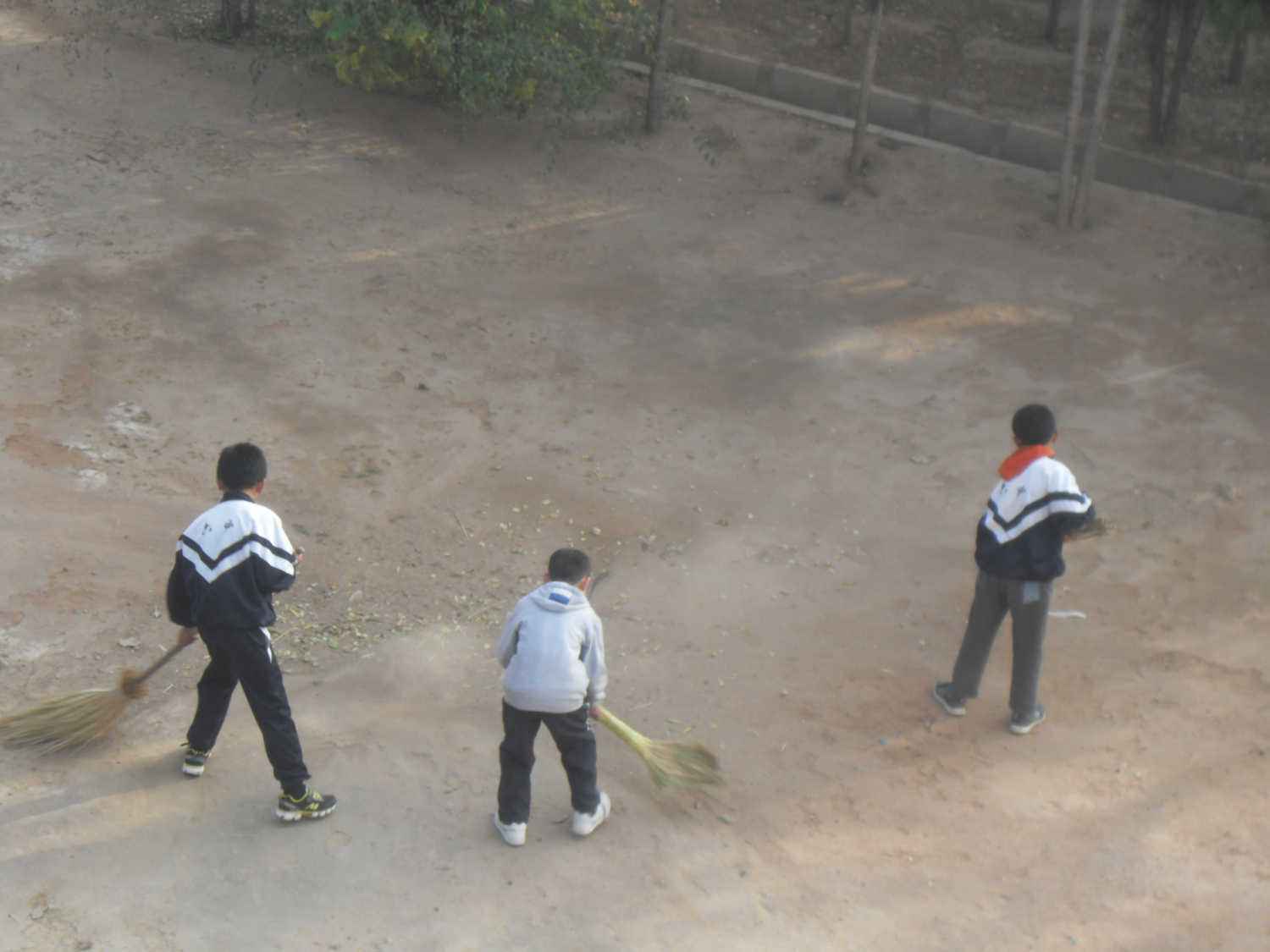 首先,每班分成两组,一组打扫教室,一组打扫室外环境卫生。其次,打扫教室的人,要将教室内的地打扫的干干净净,不能地上残留纸片,塑料袋等,还要将教室的窗户擦得一尘不染。教室的窗台上经常有灰尘,还要将灰尘擦去,在教室内洒上水,保持教室内的空气清晰。