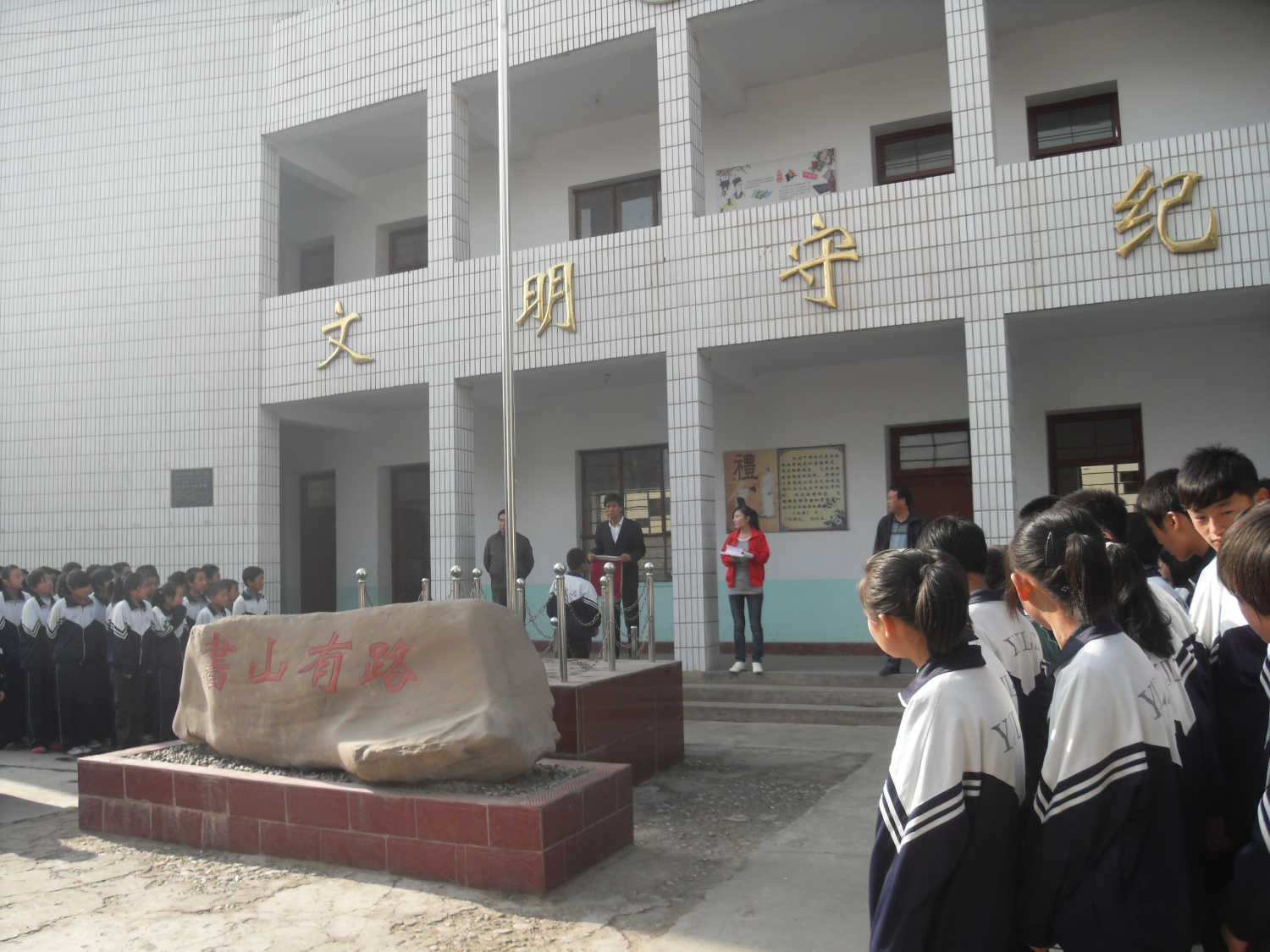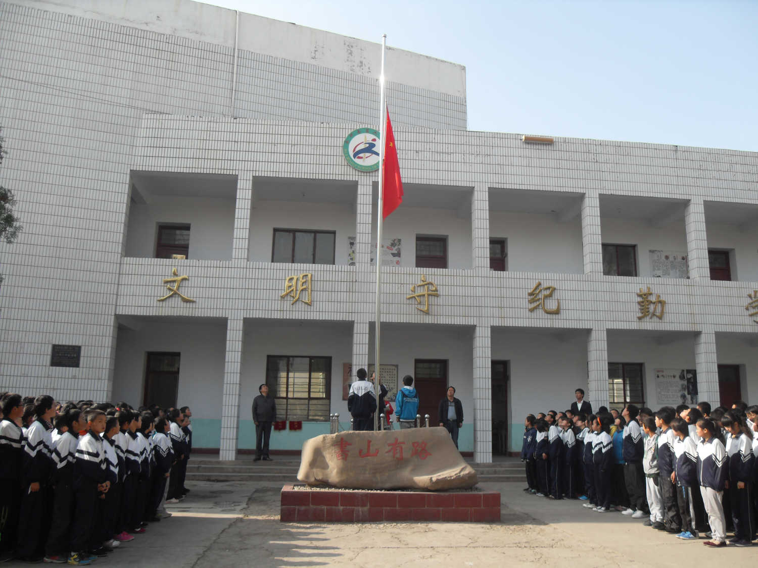 五星红旗是我们新中国的国旗,它代表着我们国家。在中国的各个学校,不论是小学、中学还是大学,都矗立着我们的国旗,在我们学校也不例外,在我们学校的教学楼前,有一座石碑,石碑后面便是国旗台。