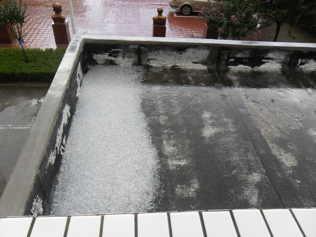 这时不知谁喊了一声:“快看啦!下冰雹了”。同学们都开始向窗边涌去,去观看这“奇观”。豆粒般大小的冰雹从天而降,被风一吹,落在窗户上,发出“乒乒乓乓”的声音。窗台上落了一层冰雹,看起来,就像小时候吃的冰糖一样,晶莹剔透。再看操场,就像一个人工湖一样,墙边冰雹落成一道“白线”,操场边上散落着被风吹落的标语牌,不知是风吹落的,还是冰雹打落的,操场边上的旗子迎风招展,大树弯着腰在风雨挣扎。渐渐的冰雹没有了,旗子落了下来,雨也变小了,似牛毛,似银针。