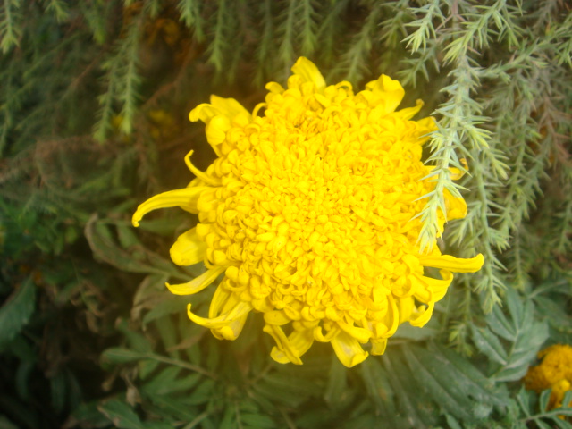 我漫步在校园里,一眼就看见了秋天的微笑——盛开的菊花不停地摇晃着脑袋。在秋天许多花儿都凋谢了,而这美丽的菊花却依然盛开着。花朵儿虽不绚丽多彩,但一朵朵花推推搡搡地,好不热闹。走到菊花跟前,啊,一股沁人心脾的花香迎面而来,接着一丝花蜜流入口中,滋润着我的心田。