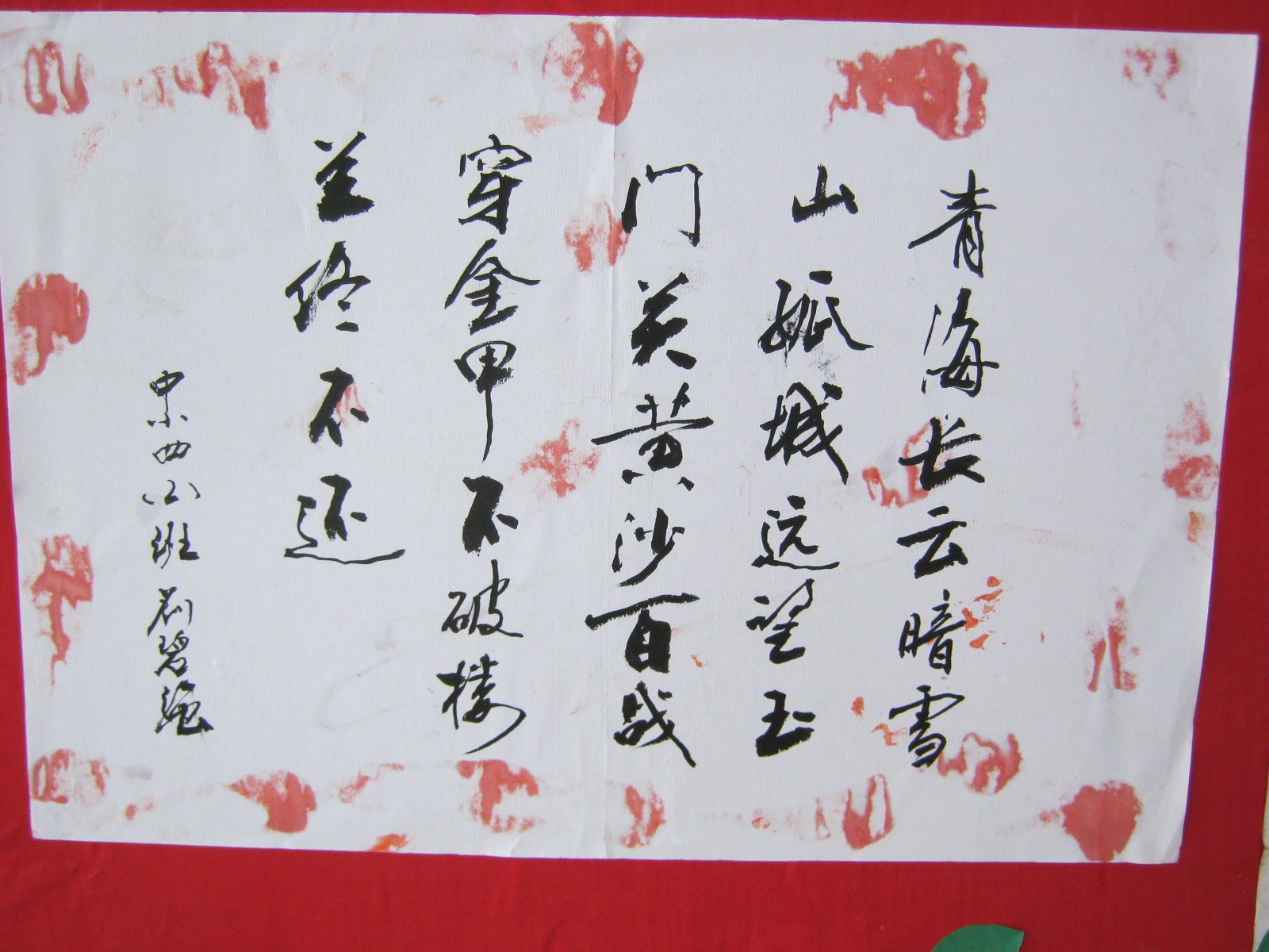 当然了,展板上除了我的作品外,还有许多的优秀作品。 有字体遒劲的书法作品,有憨态可掬的大熊猫,有可爱的大头娃娃,还有很多很多的优秀作品……