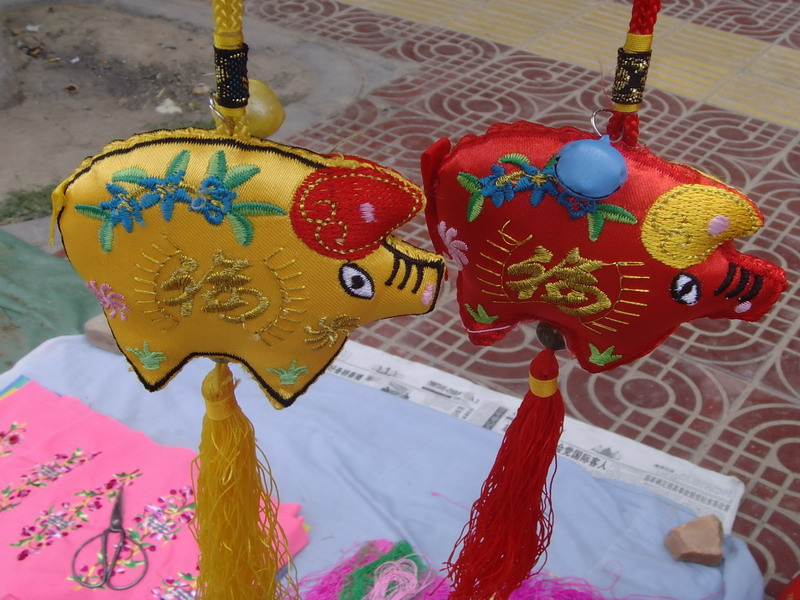 端午节快到了,农家里好多妇女都做香包针线活,她们把不同颜色的布料搭配在一起,然后用不同颜色的线封起来,构成不同的造型,比如动物生肖,花卉,然后用棉花把“香草”包起来,这样香包就鼓起来了,非常好看,最后,在做上五彩的挂线。