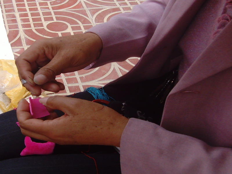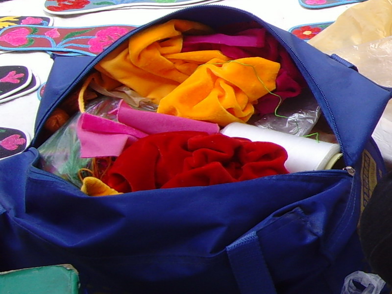 做香包,需要布料,一般选用绸缎和颜色艳丽的布料,还有各种彩色的线,针,棉花。